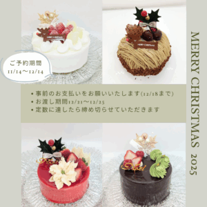 ・クリスマスケーキのご予約期間 11月14日(金)~12月14日(日)まで ※定数になり次第締め切ら